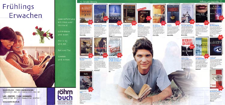 Neben meiner Layoutertätigkeit bei FTI erarbeitete ich noch im Auftrag von BWD9 für die Buchhandelskette Röhm Buch einen mehrseitigen Vierfarb-Prospekt mit aktuellen Angeboten.